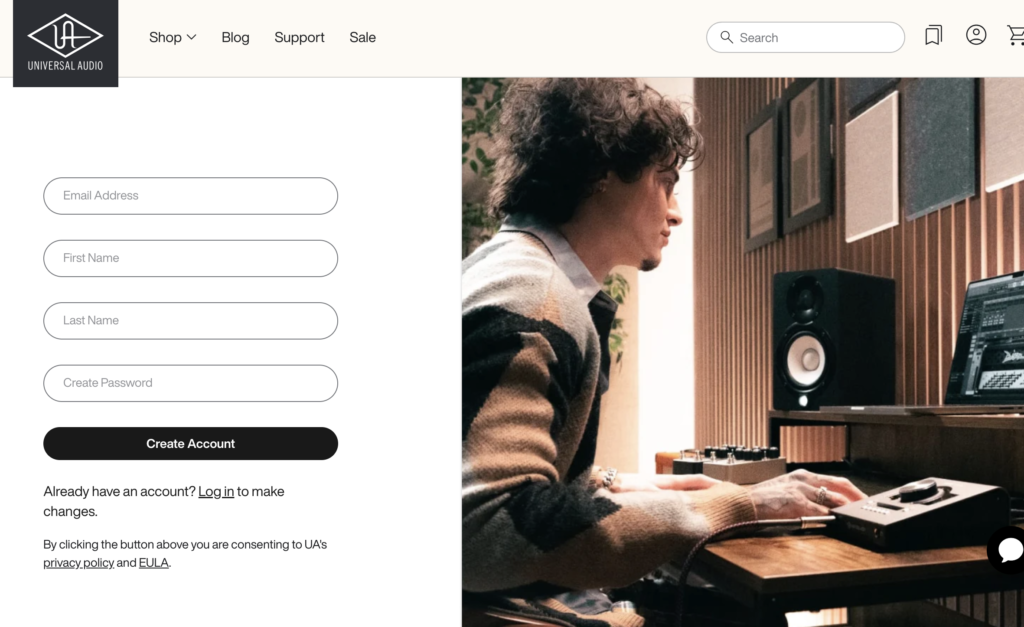 まずは全ての入り口となるUniversal Audio(UA)のアカウントを作成しましょう。