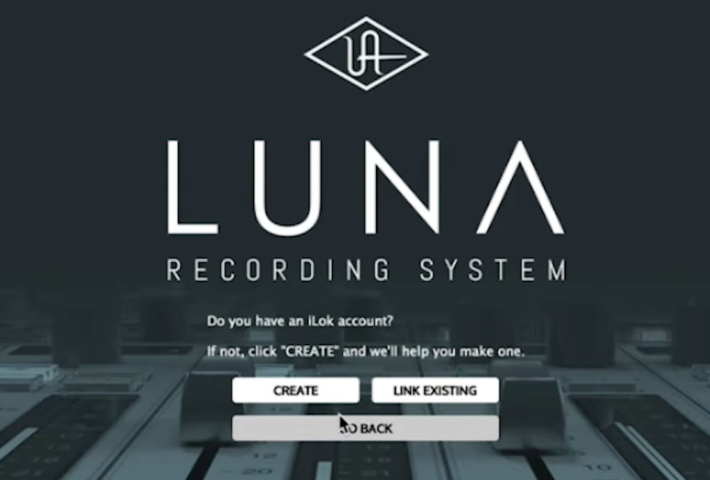 UA Connectの中でLUNAのライセンスをアクティベートしようとすると、iLokアカウントとの連携を促されます。すでにiLok IDをお持ちの方はそれを入力してリンクさせます。まだ持っていない方は、その場で新しいIDを作成することも可能です。